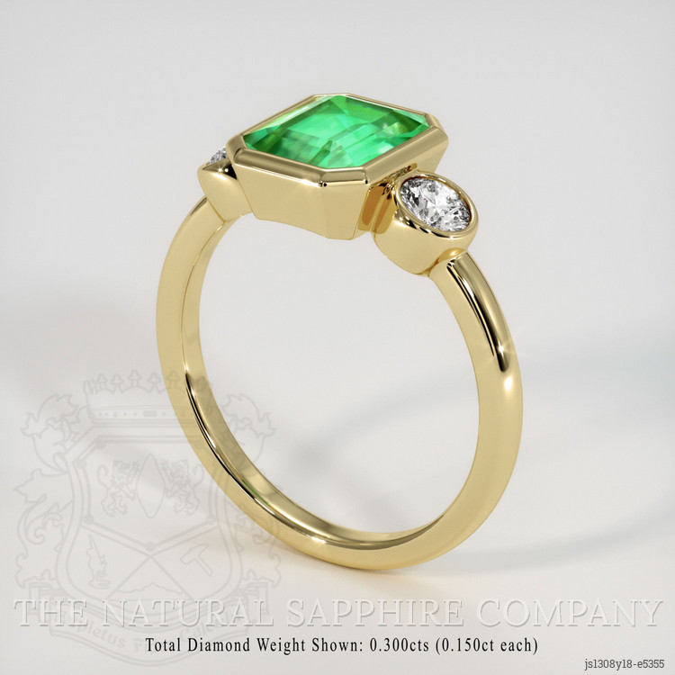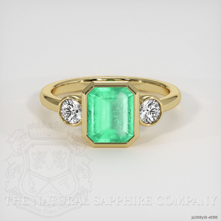 Three Stone Emerald Ring 1.38 Ct., 18K Yellow Gold