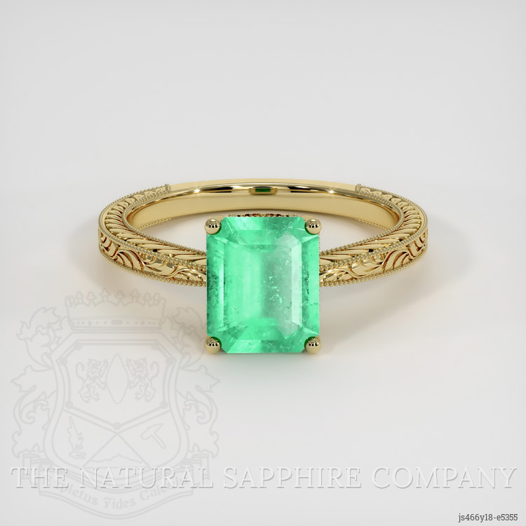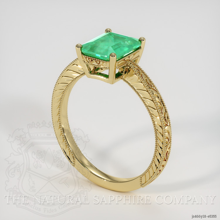 Antique Style Emerald Ring 1.38 Ct., 18K Yellow Gold