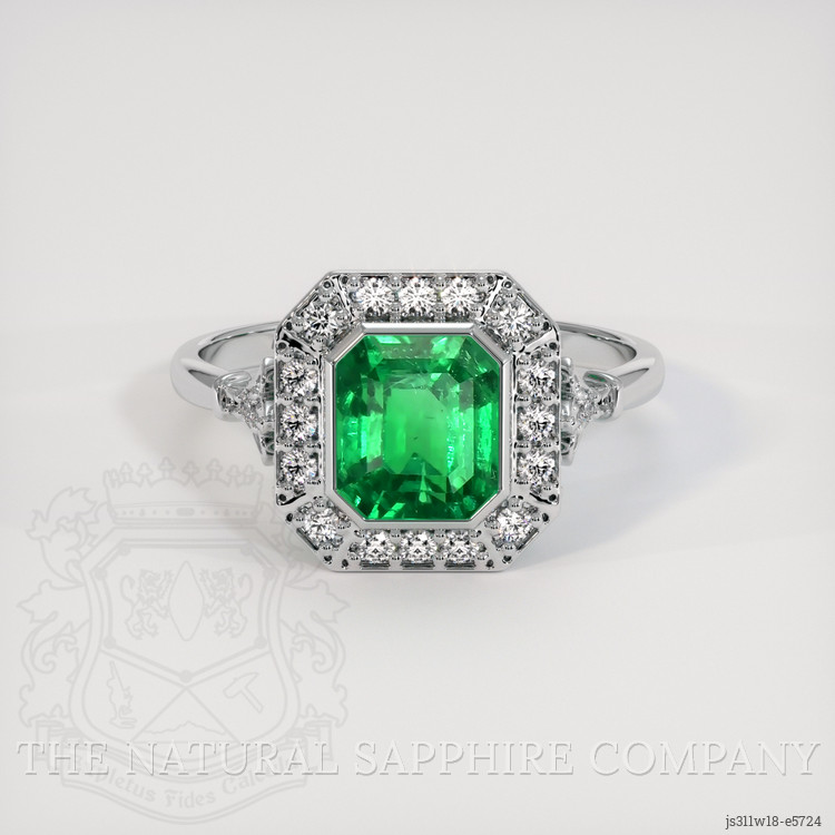 Introducing a timeless piece of elegance from The Natural Emerald Company, this stunning ring embodies the promise of new beginnings with its captivating beauty and exceptional craftsmanship. At the heart of this exquisite creation lies a 1.46 carat emerald, meticulously cut in a classic emerald shape, showcasing its transparent and vivid green hue. Its dimensions of 6.99 x 6.07 x 4.88 mm are masterfully crafted to highlight the gem's inherent charm and brilliance. With an excellent polish and a clarity grade of very slightly included, evaluated at eye level, this Zambian emerald stands as a testament to nature's magnificent artistry. Enhanced using standard methods, the stone's radiant saturation speaks to its extraordinary quality, delivering a vivid and unparalleled luster.