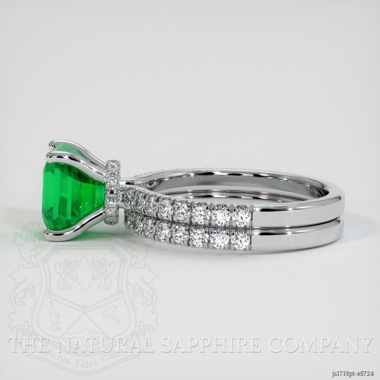 In this classic design, precision meets artistry in creating a setting that enhances the gemstone's natural brilliance. The emerald, cut in an elegant emerald shape, measures 6.99 x 6.07 x 4.88 mm, perfectly showcasing its vivid color and excellent polish. Its very slightly included clarity allows the gem to capture light flirtatiously, evoking an aura of timeless magnificence. This setting is skillfully crafted to focus attention on the emerald, allowing its resplendent color to captivate and enthrall.