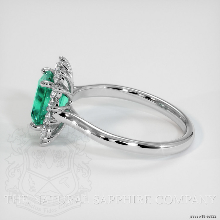 To further elevate this extraordinary piece, we have enclosed the emerald with a halo of exquisite white round diamonds. These diamonds, totaling 0.42 carats, possess a very slightly included clarity (VS1, VS2) and an immaculate F color grade, offering the perfect sparkling contrast to the emerald’s rich green. Set in luxurious 18K white gold, the entire composition is a harmonious blend of grace and exquisite craftsmanship. The 18K white gold setting not only complements the cool undertones of the emerald and diamonds but also ensures durability, making it a lasting heirloom to be treasured for generations.