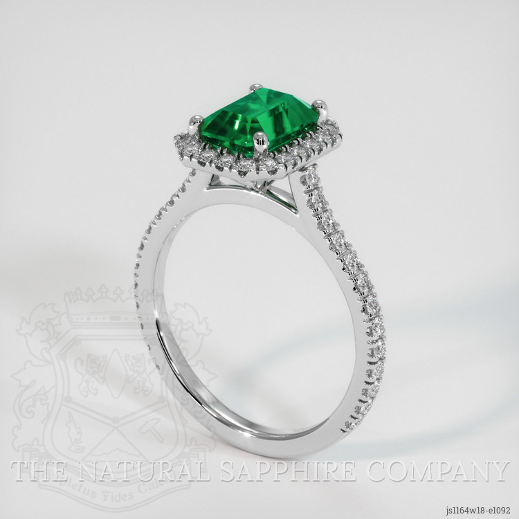 Pave Emerald Ring 1.50 Ct., 18K White Gold