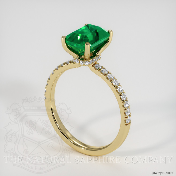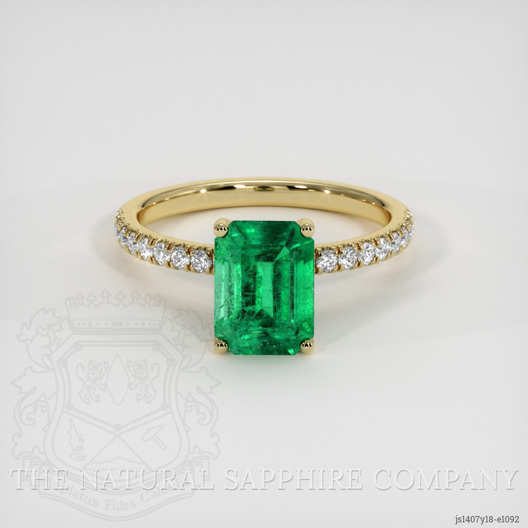 Pave Emerald Ring 1.50 Ct., 18K Yellow Gold