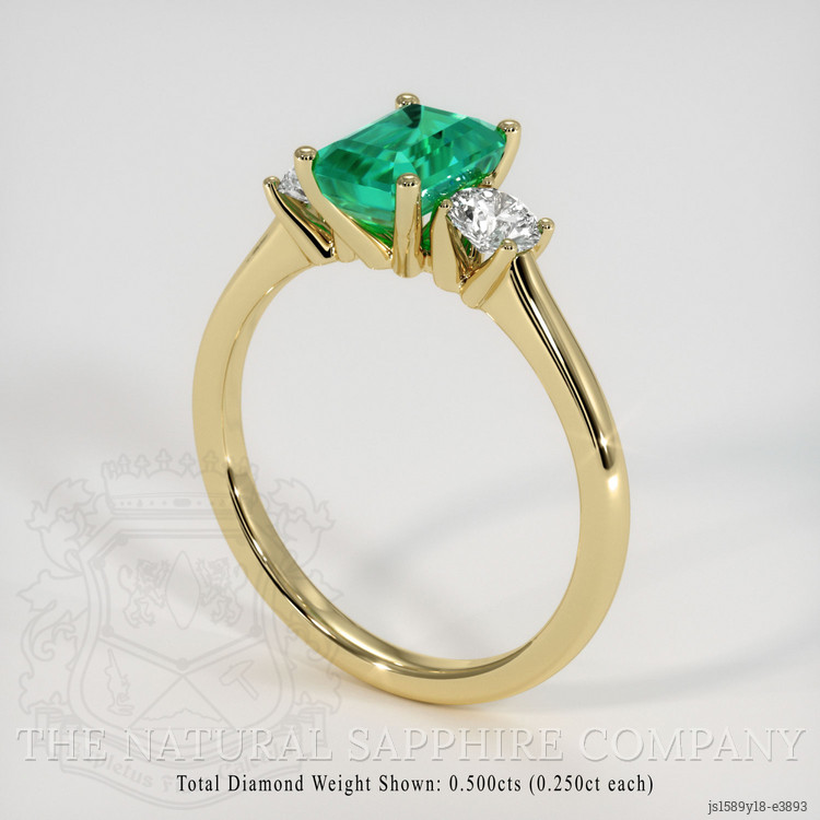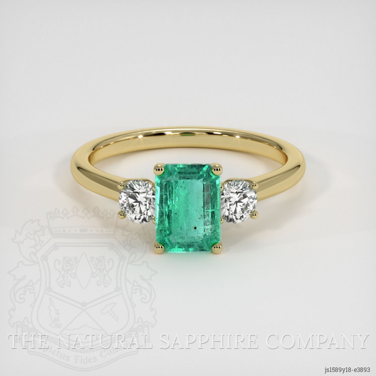 Three Stone Emerald Ring 1.58 Ct., 18K Yellow Gold