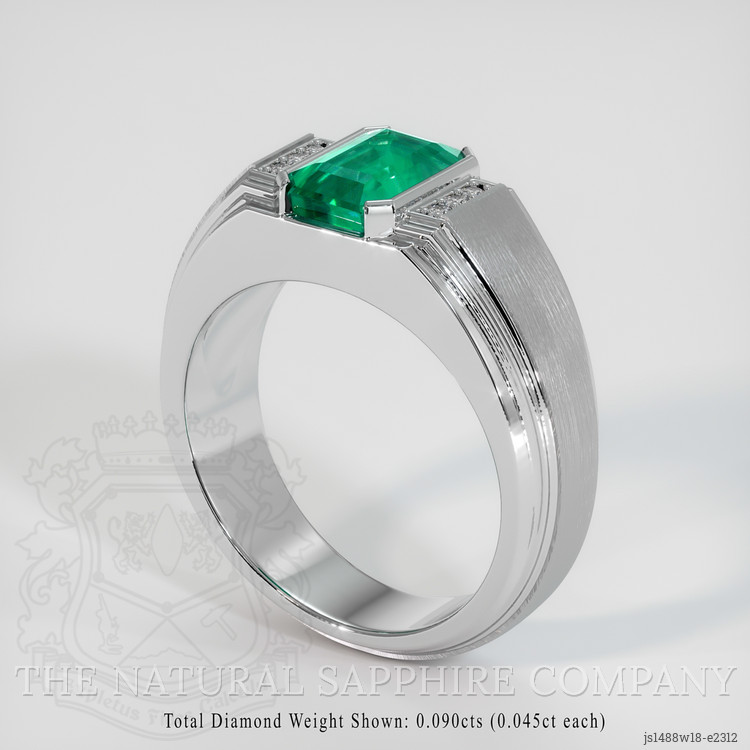 Men's Emerald Ring 1.64 Ct., 18K White Gold