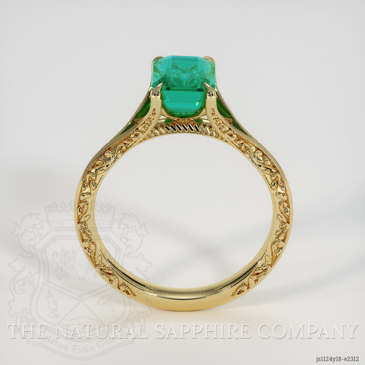 Encasing this magnificent emerald is the rich warmth of 18K yellow gold. The setting amplifies the vibrancy of the emerald, with the gold band's luminous glow perfectly complementing the gemstone's deep green tones. This harmonious combination of emerald and gold forms an aesthetically magnificent piece that is both captivating and classic, assuring its place as a cherished possession for generations to come.