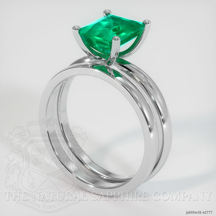 Wedding Set Emerald Ring 1.68 Ct., 18K White Gold