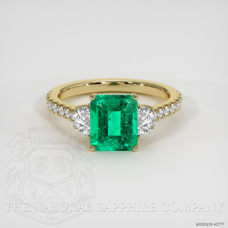 Three Stone Emerald Ring 1.68 Ct., 18K Yellow Gold