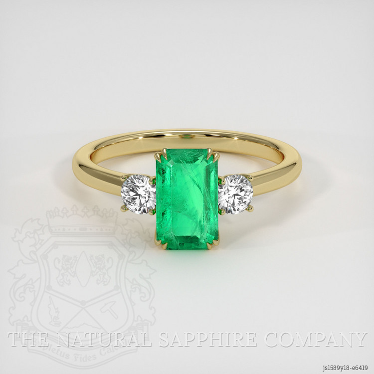 Three Stone Emerald Ring 1.70 Ct., 18K Yellow Gold