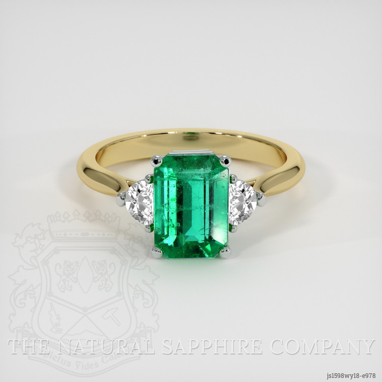 Three Stone Emerald Ring 1.86 Ct., 18K White & Yellow
