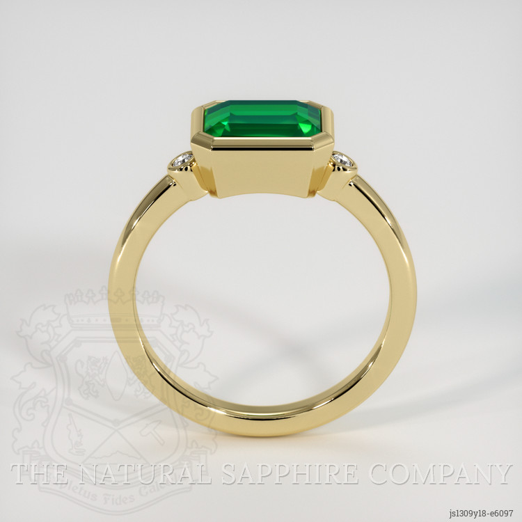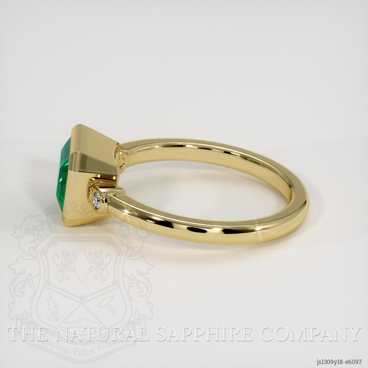 The emerald's dimensions—measuring 8.01 x 6.21 x 4.95 mm—enhance its majestic presence. The excellent polish further adds a mirror-like finish, ensuring that every glance reveals new depths of beauty. Set in a refined 18K yellow gold band, the emerald commands attention while embodying the sophistication of age-old style. The setting design is reminiscent of famous historical jewels, akin to the renowned pieces worn by royalty and aristocracy throughout history, evoking a sense of grandeur and prestige.