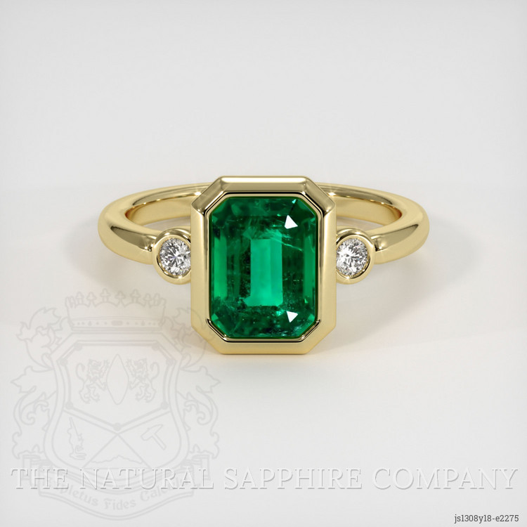 Three Stone Emerald Ring 1.90 Ct., 18K Yellow Gold