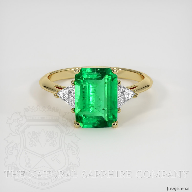 In this exclusive creation, the emerald is gracefully set amidst radiant white trillion-shaped diamonds weighing approximately 0.40 carats. These diamonds, possessing a clarity grade of VS1-VS2 and a pristine color grade of E, complement the emerald with their unparalleled brilliance. The trillion cuts are strategically placed to enhance the emerald's vivacity and grandeur. Each sparkle whispers of prestige and fine artistry, accentuating the ethereal glow of the central emerald. At The Natural Emerald Company, each piece is more than mere luxury—it's an experience of being a part of an elite circle.