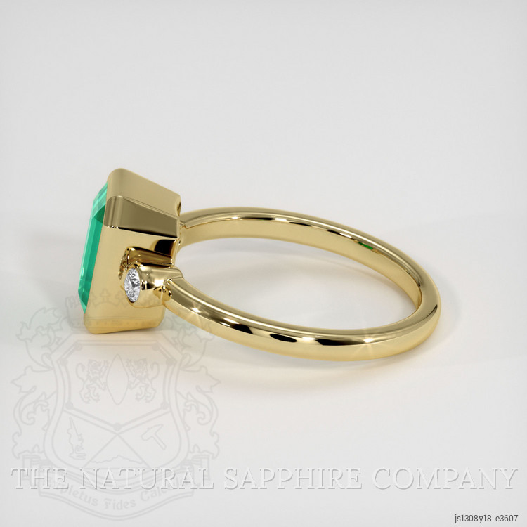 The centerpiece of this stunning creation is a 1.92 carat emerald-cut green emerald, originating from the renowned mines of Colombia. With dimensions of 8.22 x 6.05 x 5.21 mm, the emerald boasts a beautiful transparency and an intriguing depth, inviting admirers to lose themselves in its graceful allure. The stone's medium color saturation, paired with a clarity grade of very slightly included, offers a balance of natural beauty and sophistication. Its excellent polish further highlights the gem's captivating elegance, ensuring it gleams from every angle.
