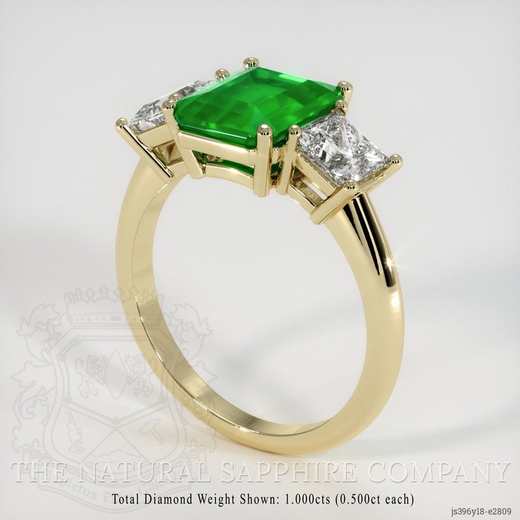 Three Stone Emerald Ring 1.98 Ct., 18K Yellow Gold