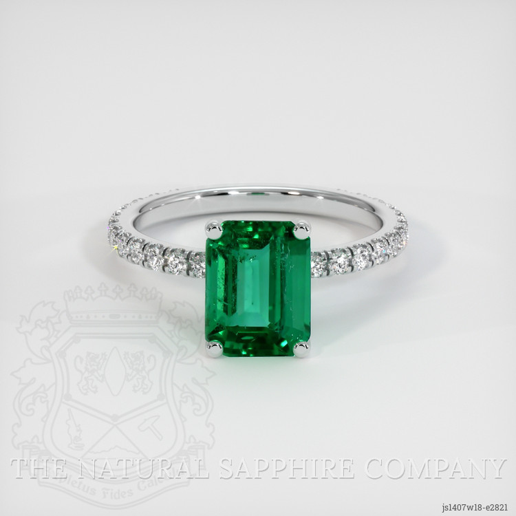 Pave Emerald Ring 2.10 Ct., 18K White Gold