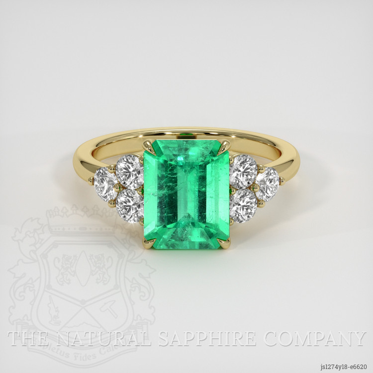 Accent Stones Emerald Ring 2.62 Ct., 18K Yellow Gold