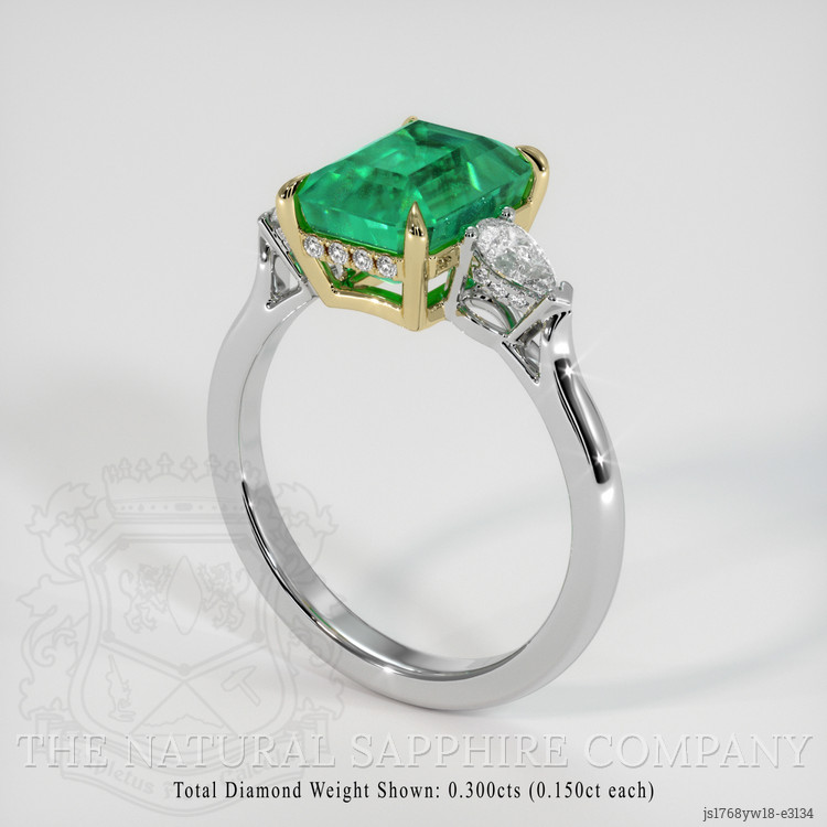 Three Stone Emerald Ring 2.67 Ct., 18K Yellow & White