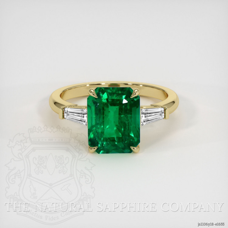 Three Stone Emerald Ring 2.71 Ct., 18K Yellow Gold