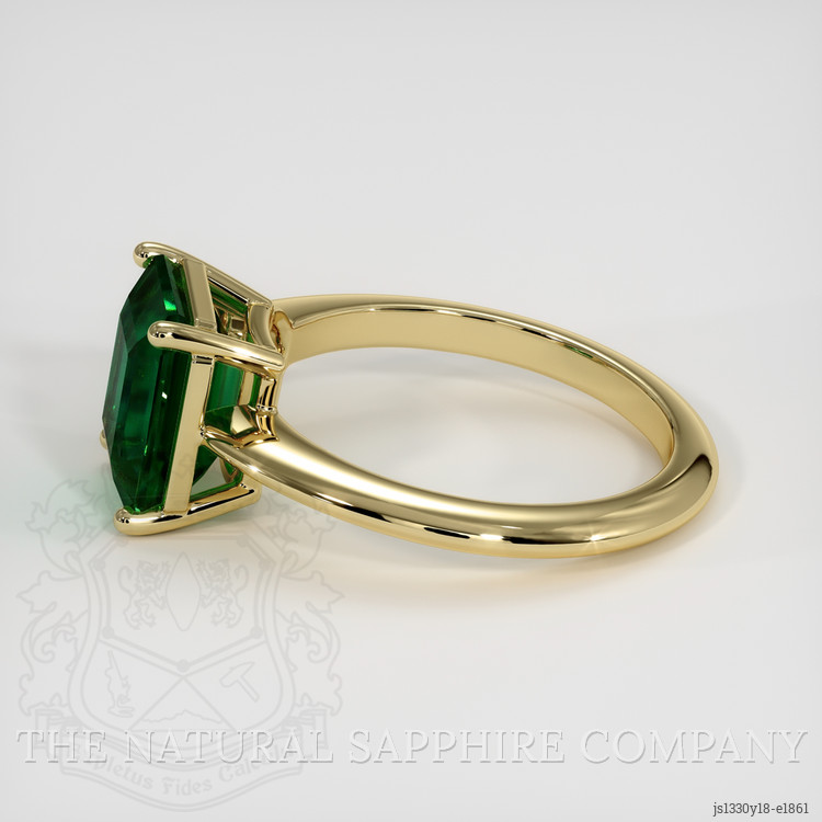 The ring features a beautiful, transparent 2.75 carat emerald cut shape green emerald with the dimensions of 9.37 x 8.09 x 4.92 mm and a emerald cut. It has a clarity grade of very slightly included (evaluated at eye level), vivid color saturation, and an excellent polish. The origin of this emerald is Zambia.