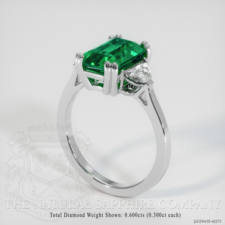 Three Stone Emerald Ring 2.91 Ct., 18K White Gold