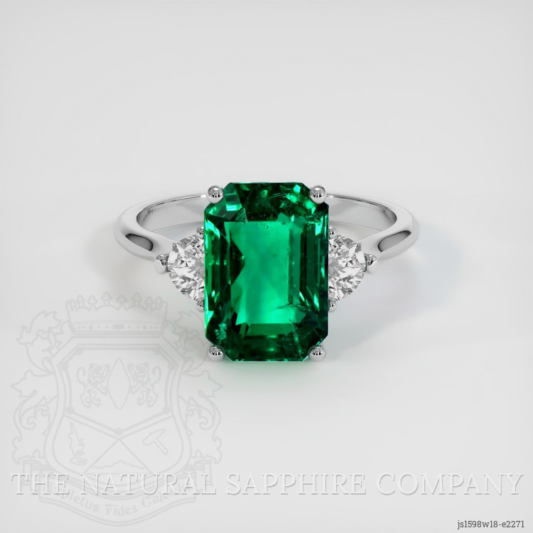 Three Stone Emerald Ring 2.91 Ct., 18K White Gold