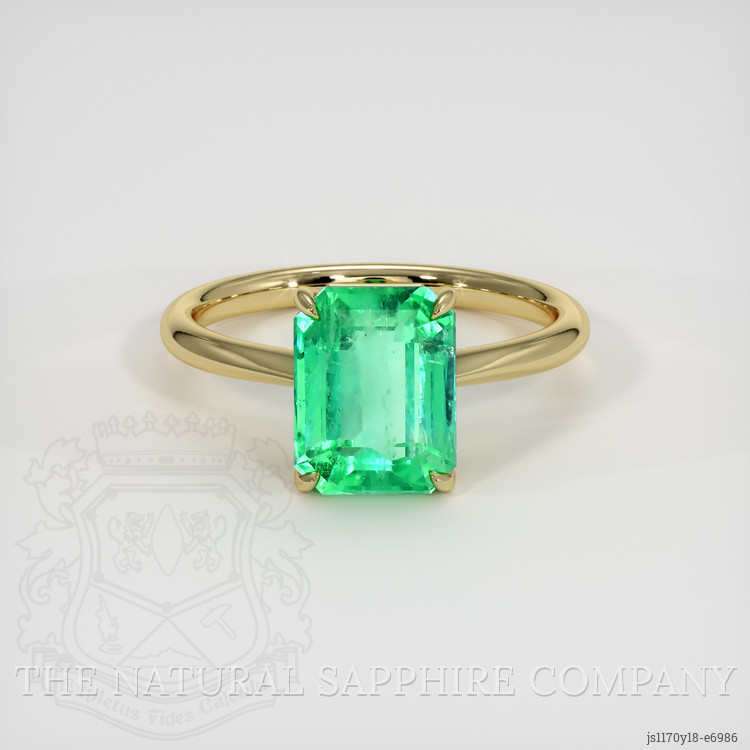 Set entirely in luxurious 18K yellow gold, this ring exudes timeless elegance and style. The choice of yellow gold as a setting not only enhances the emerald's vibrant color but also offers a classic contrast unrivaled by other metals. While many gemstone rings tend to favor more traditional cuts, our emerald cut has been specifically chosen to amplify the stone's inner fire and brilliance. This cut allows light to dance within the gem, highlighting its innate beauty in a way that other cuts simply cannot achieve. Standard enhancement techniques assure that the stone remains visibly pristine and full of life without any artificial interference, a true testament to our commitment to offering only the finest quality pieces.