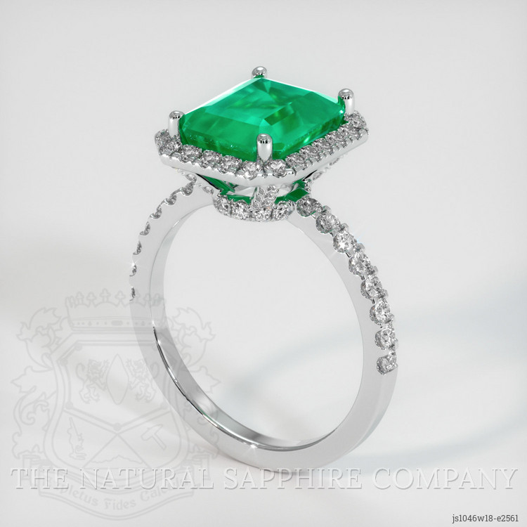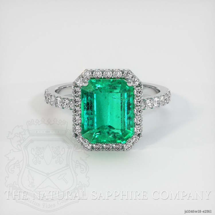 Pave Emerald Ring 3.09 Ct., 18K White Gold