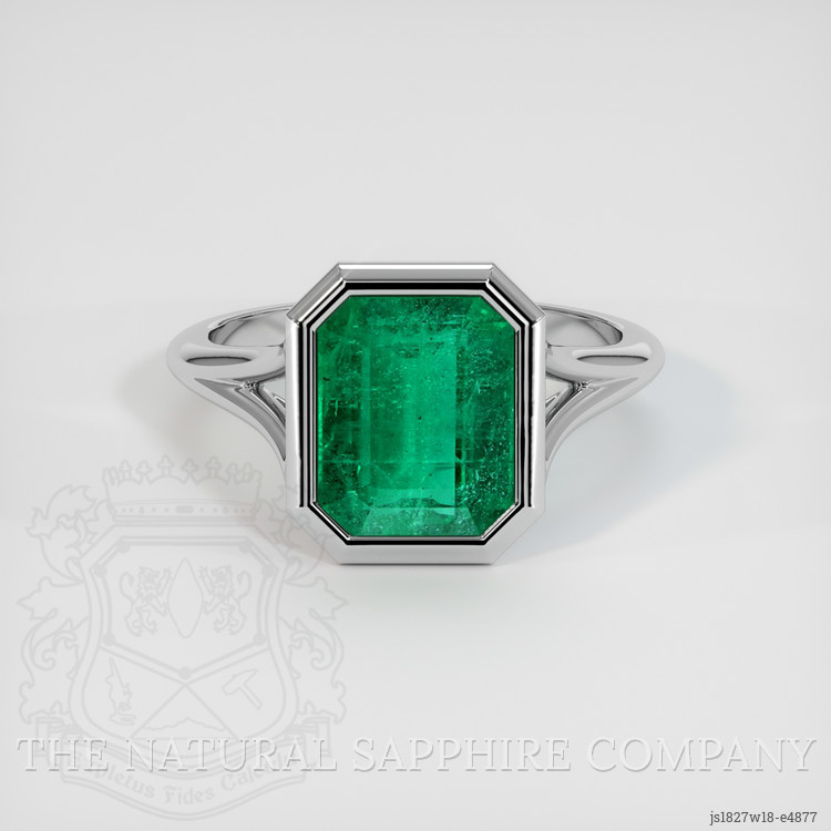 Bezel Emerald Ring 3.29 Ct., 18K White Gold