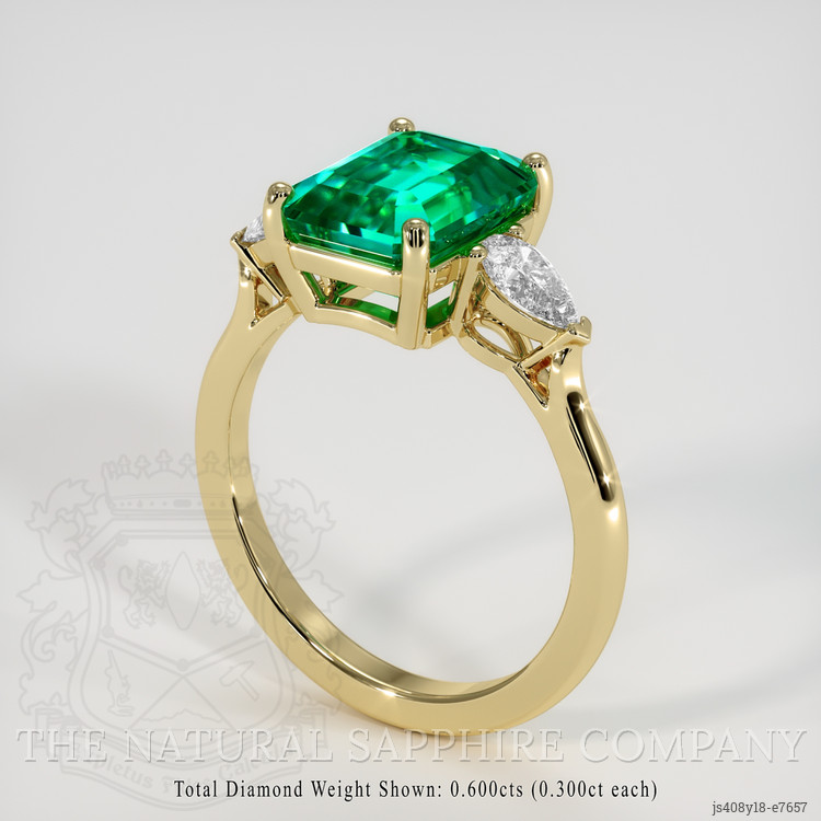 The band is no less impressive. Crafted from highly durable 18K yellow gold, it not only exudes warmth and luxury but promises long-term wear that withstands the test of time. This rich gold setting serves as the perfect backdrop for the vibrant emerald and sparkling diamonds, enhancing their natural splendor. It's not just a ring; it's a promise of durability and style, ensuring that your investment remains a treasured possession through years of cherished memories and special occasions.