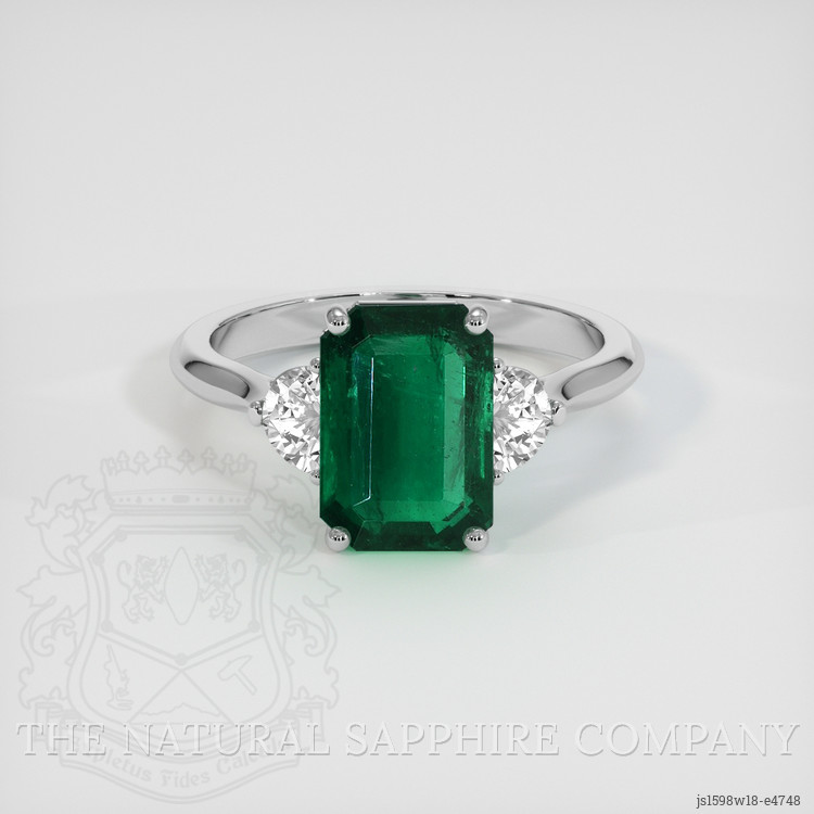 Three Stone Emerald Ring 3.37 Ct., 18K White Gold