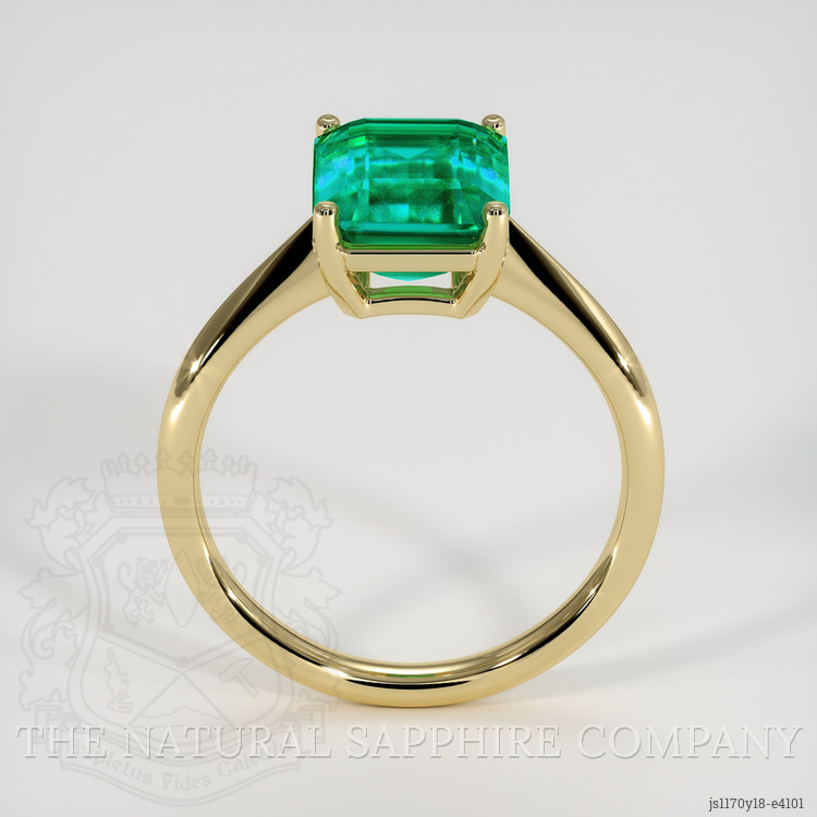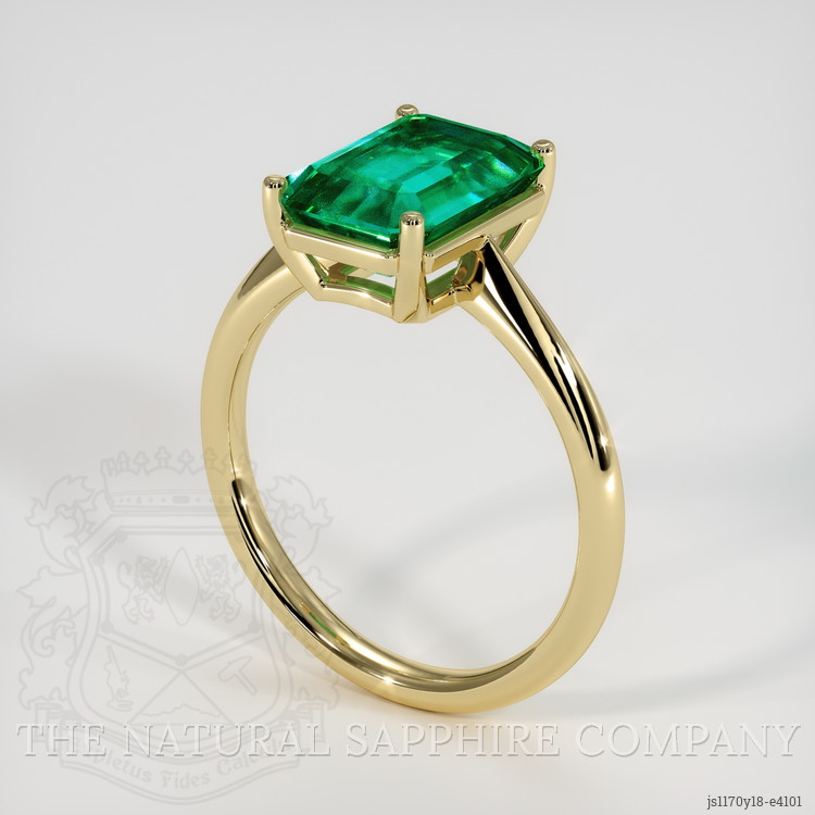 In comparison to other emerald-set rings in the market, our offering stands distinctly superior regarding quality and value. The excellent polish of the emerald enhances its internal glow, allowing it to shimmer brilliantly from every angle. Additionally, the emerald cut, a hallmark of elegance, amplifies its inherent splendor while ensuring the gemstone's durability. This choice of cut not only maximizes the visual appeal but also celebrates the emerald's long history as a symbol of royalty and prestige. Set entirely in 18K yellow gold, the ring exudes luxury and timelessness. The yellow gold setting complements the green of the emerald, enriching its color and enhancing its sophisticated charm.