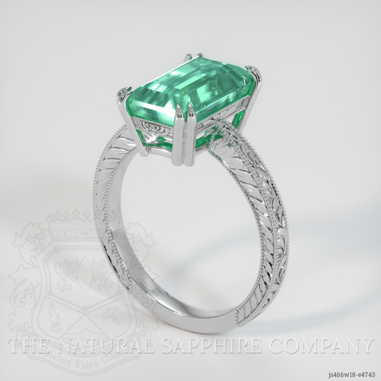 Antique Style Emerald Ring 3.72 Ct., 18K White Gold