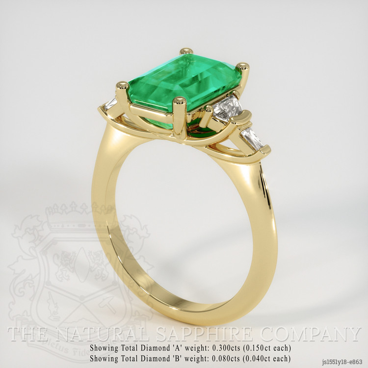 Accent Stones Emerald Ring 3.76 Ct., 18K Yellow Gold