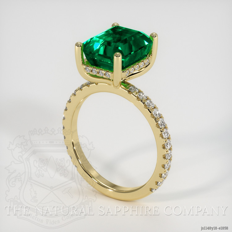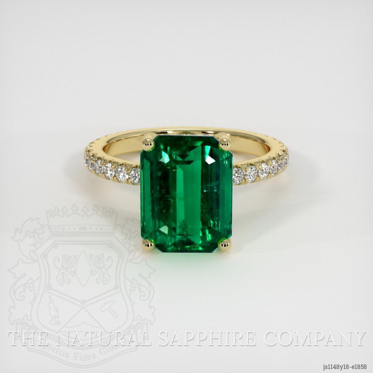 Pave Emerald Ring 3.79 Ct., 18K Yellow Gold