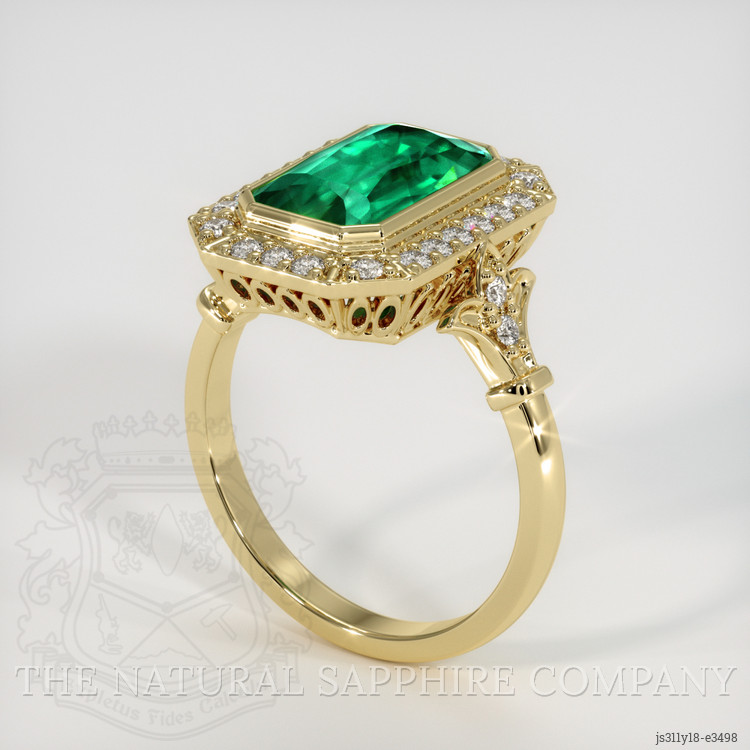 Antique Style Emerald Ring 3.84 Ct., 18K Yellow Gold
