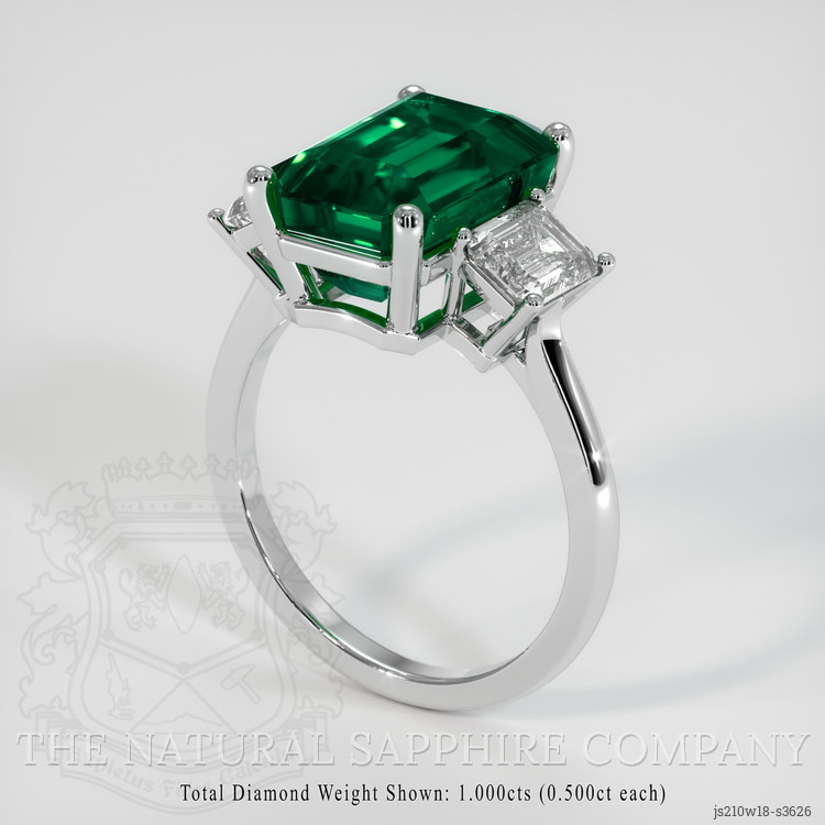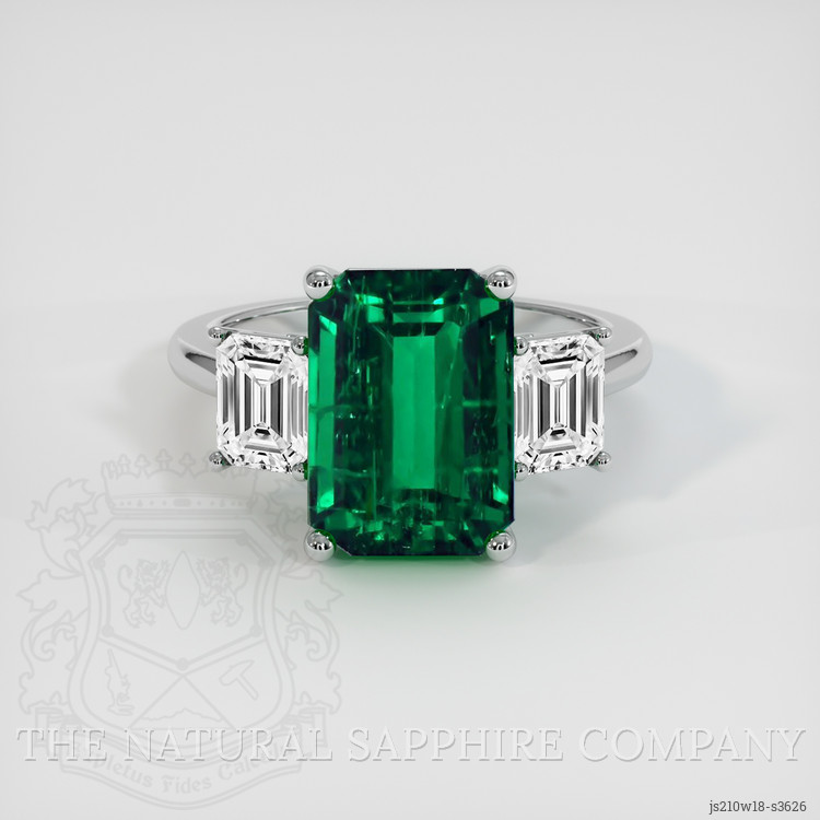 Three Stone Emerald Ring 4.30 Ct., 18K White Gold