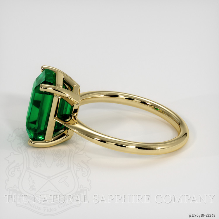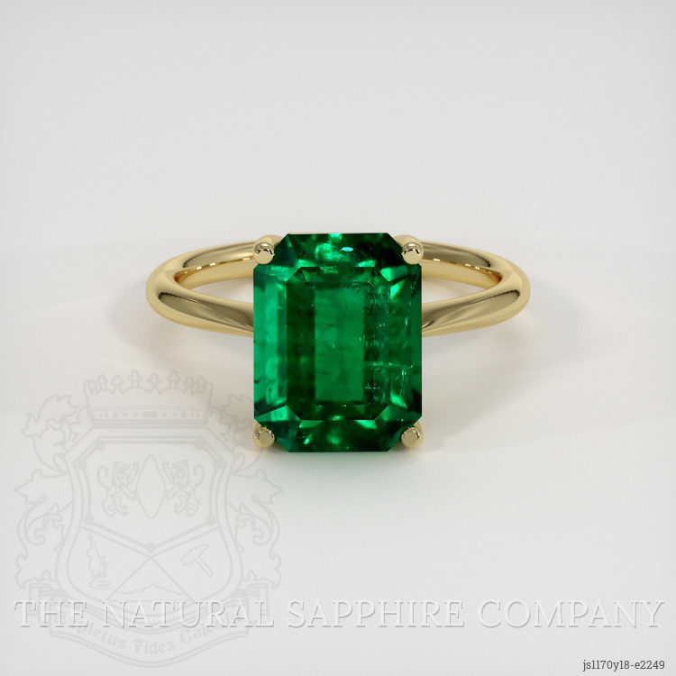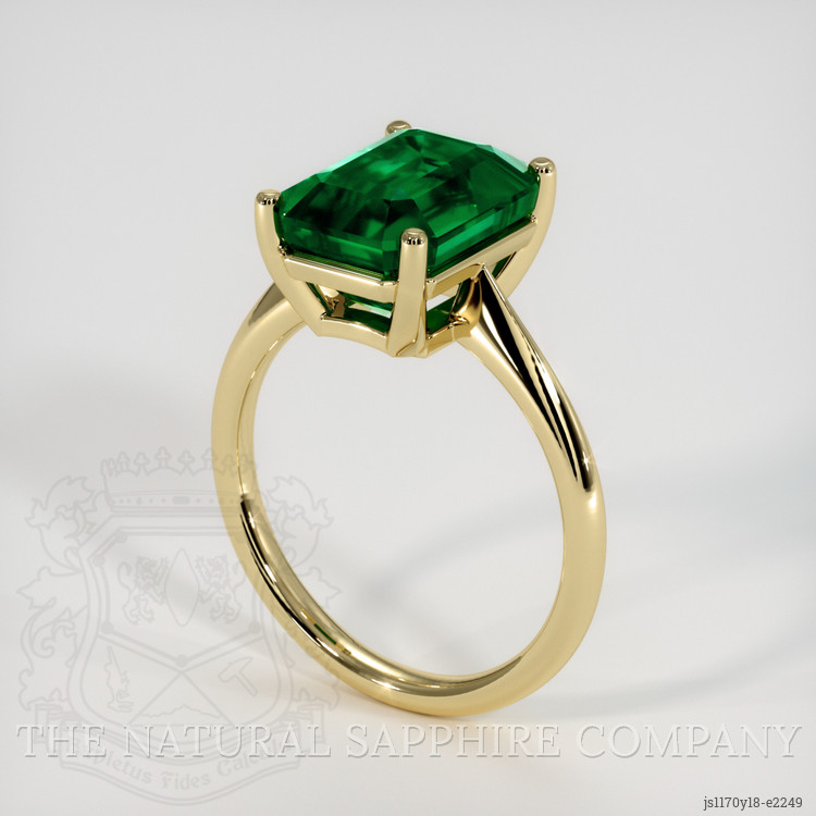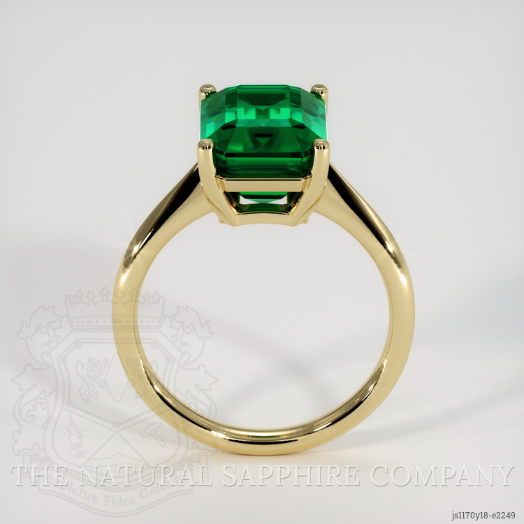 Embrace this vision's clarity, reminiscent of new spring leaves basking in golden sunlight, as the emerald unveils its slightly included heart. The step-cut facets, expertly polished to mirror perfection, guide one's soul along an eternal path. Standard enhancements whisper tales of time-honored traditions, maintaining nature’s purity and grace. This enchanting artifact finds its true counterpart in the rich, warm glow of 18K gold, caressing the stone with the delicate tenderness of a lover's touch. As a masterful symphony enriches the soul by its presence alone, this ring stands as both statement and accompaniment, effortlessly enhancing any jewelry collection.