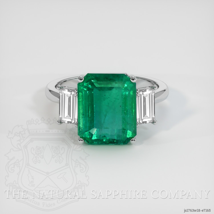 Three Stone Emerald Ring 5.11 Ct., 18K White Gold