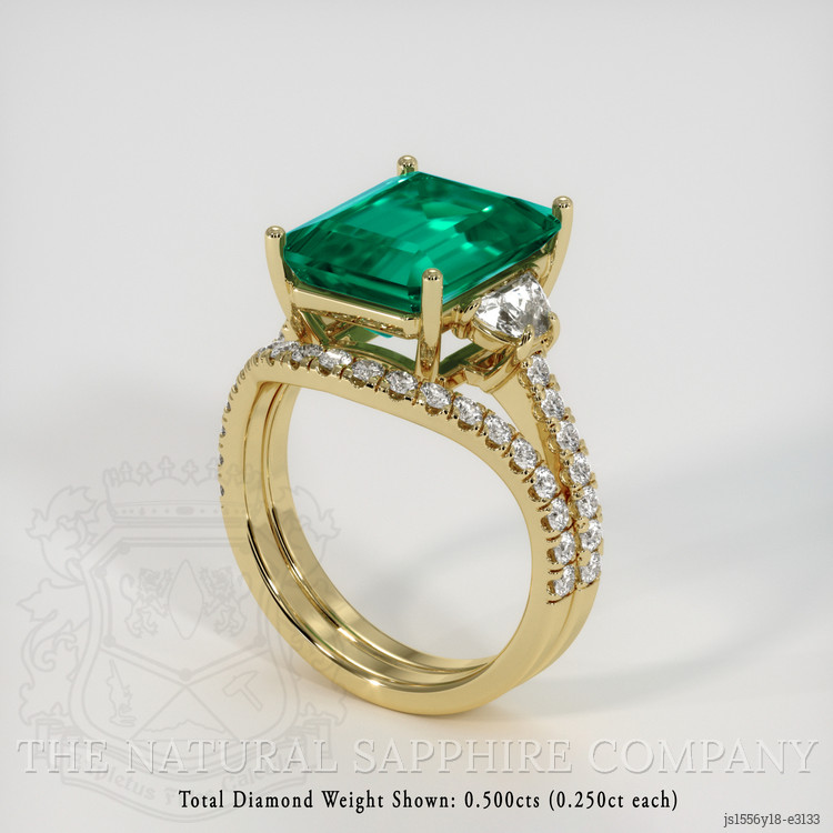 Three Stone Emerald Ring 5.73 Ct., 18K Yellow Gold