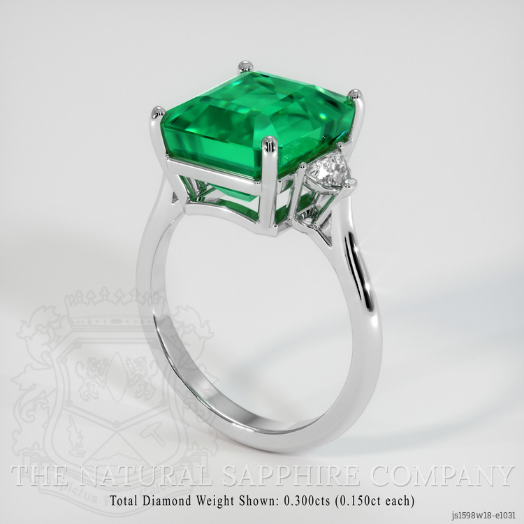 Three Stone Emerald Ring 6.20 Ct., 18K White Gold