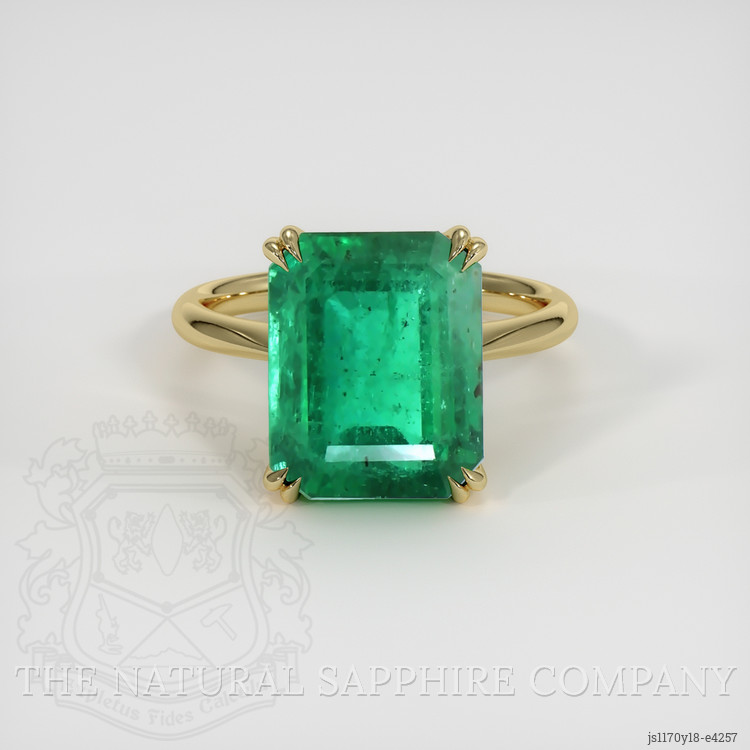 Introducing an exquisite creation from The Natural Emerald Company, which elevates the art of fine jewelry with a stunning emerald ring that balances elegance and technical mastery. Central to this piece is a magnificent 7.81-carat, emerald-cut green emerald, measuring 12.59 x 10.06 x 7.79 mm. This remarkable gemstone is distinguished by its intense color saturation and pristine transparency, truly making it a sight to behold. Evaluated at eye level, the emerald holds a clarity grade of 'slightly included', ensuring that natural features do not detract from its brilliance. The gemstone's excellent polish enhances its luster, adding a brilliant touch that captures light from every angle, magnifying its inherent beauty.