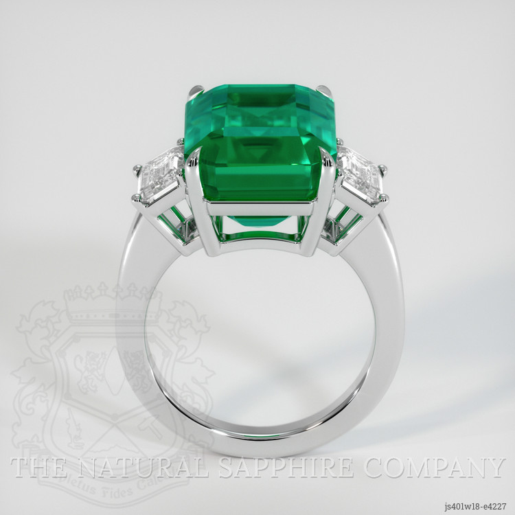 Three Stone Emerald Ring 9.82 Ct., 18K White Gold