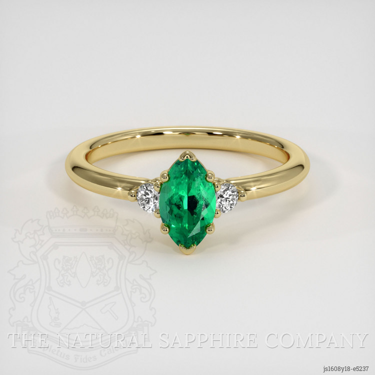 Discover the epitome of elegance with our exquisite ring from The Natural Emerald Company, featuring a captivating 0.53 carat marquise shape green emerald. This gemstone, sourced from the renowned emerald mines of Russia, is a masterpiece of nature, boasting dimensions of 7.54 x 4.39 x 3.09 mm. Expertly crafted with a mixed brilliant cut, it showcases an intense color saturation and an excellent polish that enhances its natural beauty. With a clarity grade of very slightly included, evaluated at eye level, this emerald provides an unparalleled allure that stands out even to discerning collectors.