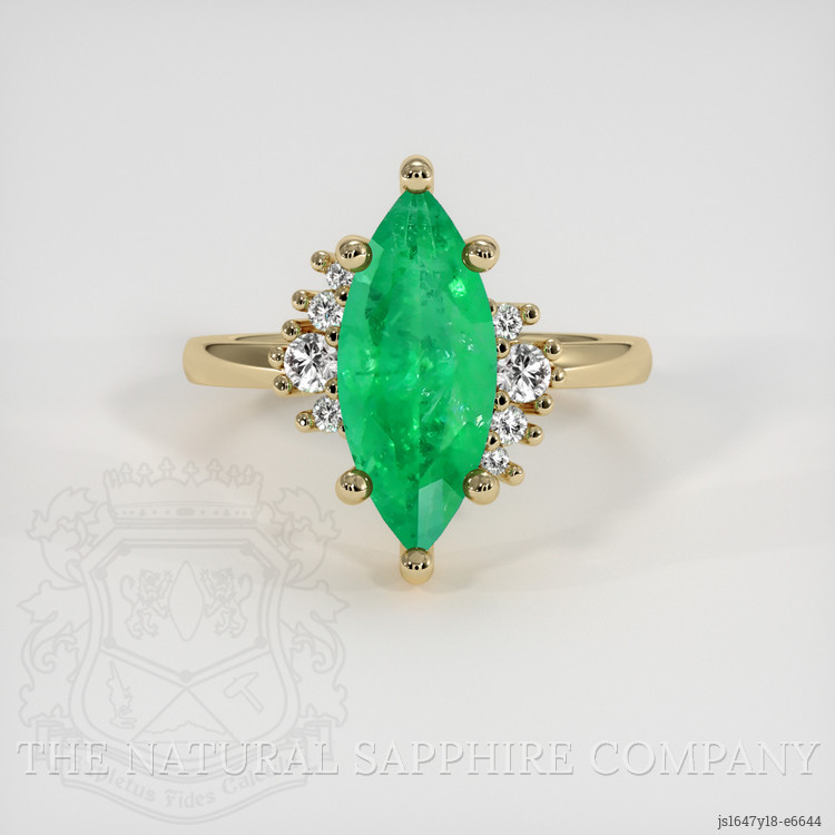 Introducing The Natural Emerald Company's exquisite ring, featuring a stunning 2.39 carat marquise-shaped emerald from the lush mines of Zambia. This transparent green emerald, with dimensions of 15.13 x 6.34 x 4.93 mm, captivates the eye with its mixed brilliant cut. The cut enhances the gemstone's light performance, creating a captivating sparkle that eclipses other styles. Emeralds are renowned for their deep, lush hue, but when set in this marquise shape, it further enhances their vibrancy, offering a dance of light and color that is unmatched. Paired with medium intense color saturation and an excellent polish, this emerald promises to be the statement piece that ends your search for the ideal gemstone.