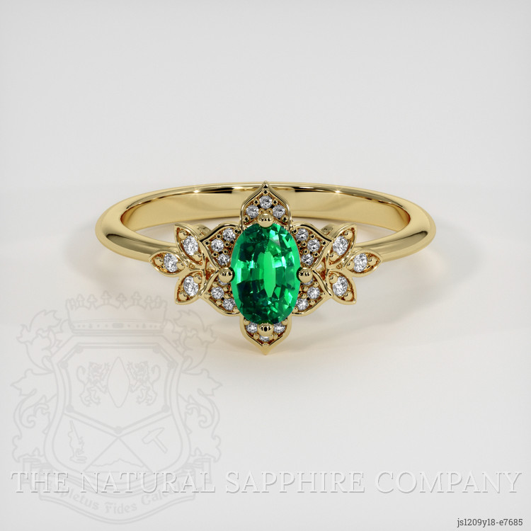 At The Natural Emerald Company, we pride ourselves on offering meticulously crafted jewelry, and this exquisite ring exemplifies our commitment to quality and sophistication. The centerpiece of this stunning piece is a transparent 0.44 carat green emerald, expertly faceted in an oval shape. With measurements of 6.11 x 4.16 x 2.95 mm, the emerald is a testament to precision craftsmanship. Employing a mixed brilliant cut, its intricate faceting enhances both the brilliance and vivid color saturation, making it truly captivating to the eye. The exceptional polish and eye clean clarity grade further underscore its superior quality, ensuring that the natural beauty of the emerald is entirely unobstructed.