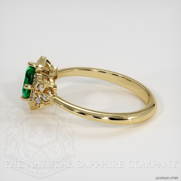 Encasing these magnificent stones is a setting crafted from 18K yellow gold, adding a warm luster that complements the rich color of the emerald and the dazzling sparkle of the diamonds. Yellow gold is not only aesthetically pleasing but also known for its durability. Its robustness ensures that the ring withstands everyday activities while maintaining its splendor. The choice of 18K gold ensures a premium finish, resistant to tarnishing and corrosion, thus preserving its timeless beauty.