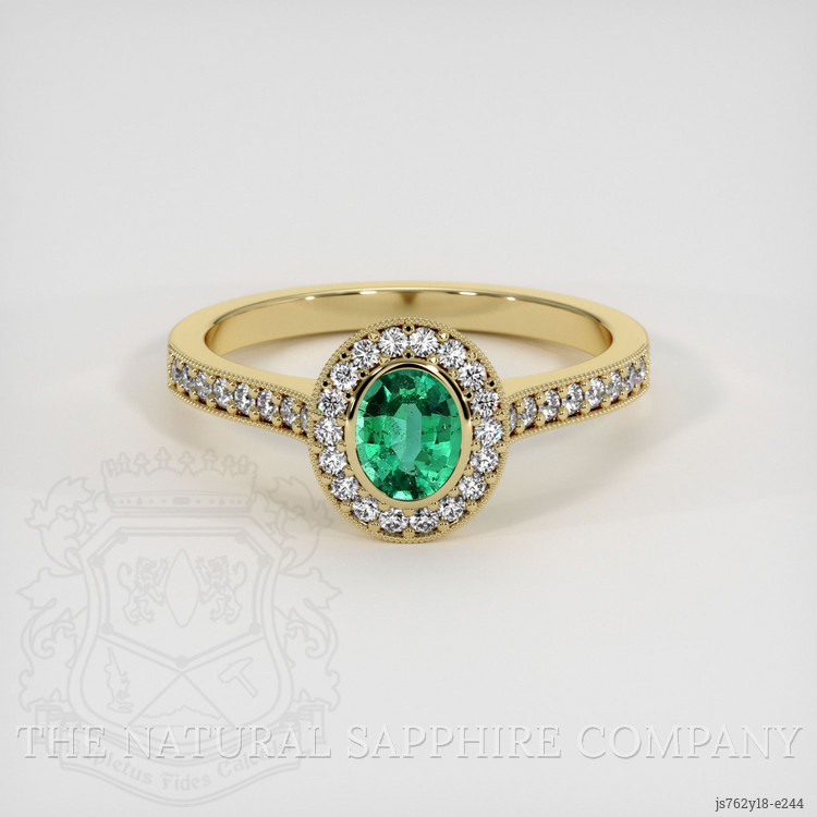 Pave Emerald Ring 0.50 Ct., 18K Yellow Gold