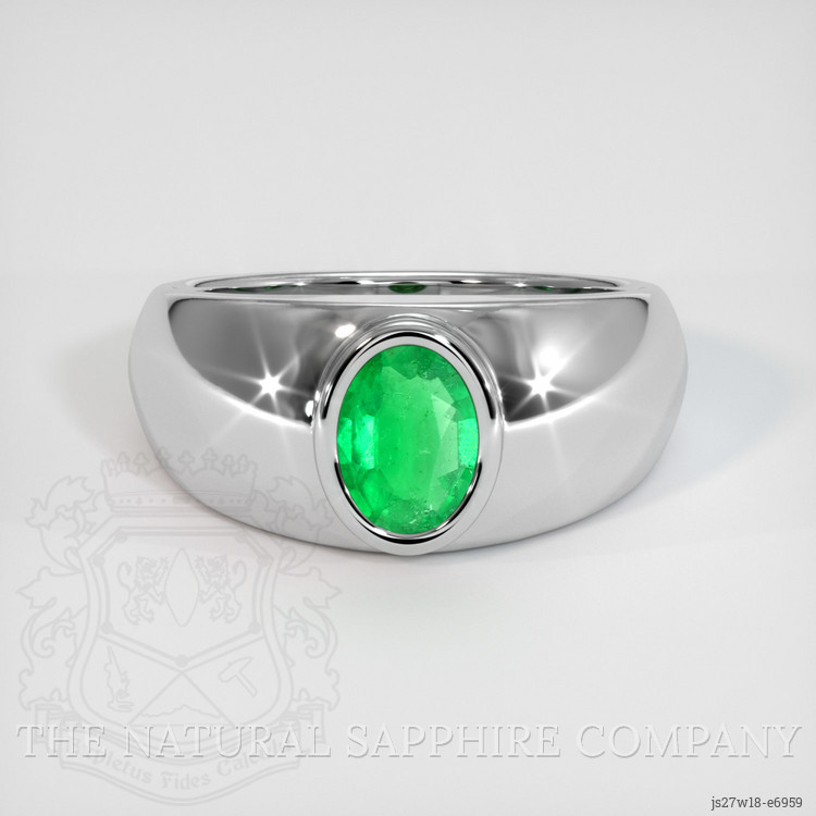 Men's Emerald Ring 0.52 Ct., 18K White Gold