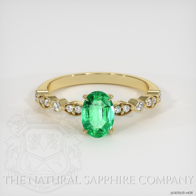 Pave Emerald Ring 0.69 Ct., 18K Yellow Gold